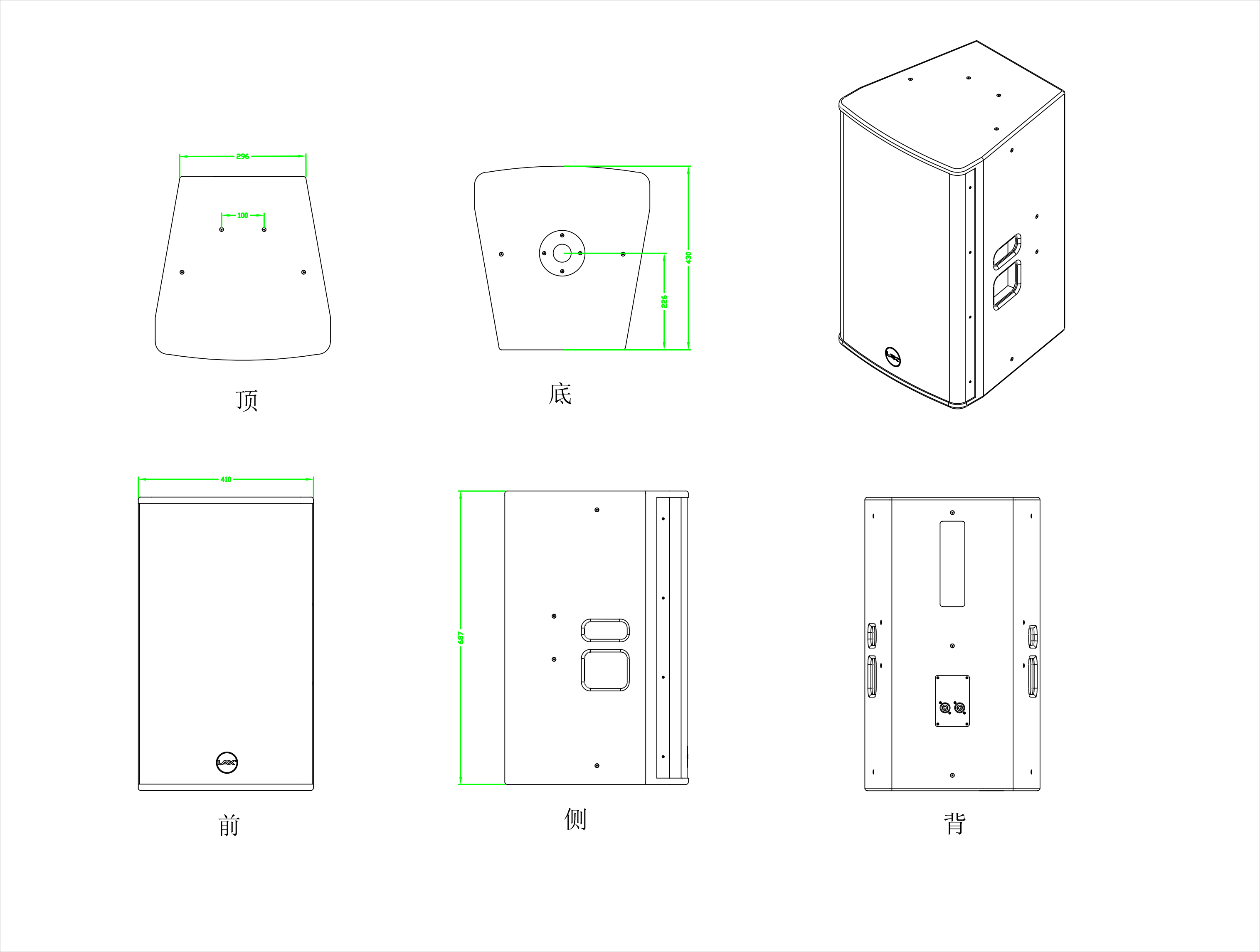 RS系列是一款專門針對KTV環(huán)境擴(kuò)聲特點(diǎn)而開發(fā)的全頻音箱。精心設(shè)計(jì)的快速擴(kuò)展高頻號筒,調(diào)整高頻與低頻單元之間的時(shí)間差和校正相位角的差異,并確保波陣面平滑,提供準(zhǔn)確的波束圖形控制的同時(shí)消除分頻點(diǎn)附近區(qū)域的干涉。箱體由高質(zhì)量的15mm厚中密度板制作, 表面采用耐磨噴漆處理。箱體為梯形結(jié)構(gòu),配備1個(gè)Neutrik NL4MP接口供與功放連接時(shí)使用。箱體有11個(gè)M10螺紋懸掛 點(diǎn),6個(gè)KTV吊架安裝用的M10螺絲安裝點(diǎn)。六邊形孔鐵網(wǎng)采用了帶防塵網(wǎng)的設(shè)計(jì),更有效地保護(hù)驅(qū)動單元,整體外觀設(shè)計(jì)極具專業(yè)風(fēng)格