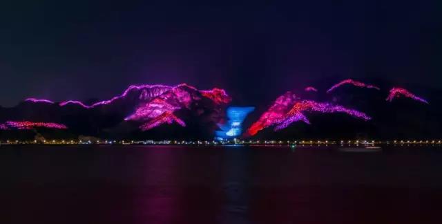 山體燈光秀以北岸勝美尖山為載體,覆蓋山體約950萬(wàn)平方米。目前在公開(kāi)資料中尚未發(fā)現(xiàn)有超越其面積的山體燈光景觀。