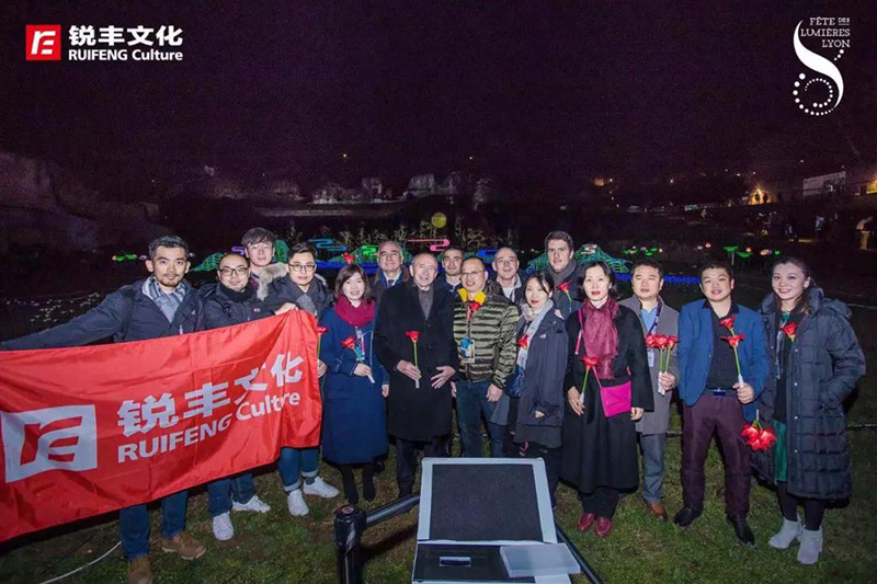 ▲里昂市長熱拉爾.科隆與廣州**燈光節(jié)總制作人、銳豐文化總經(jīng)理黃沛凌女士一行合影留念。