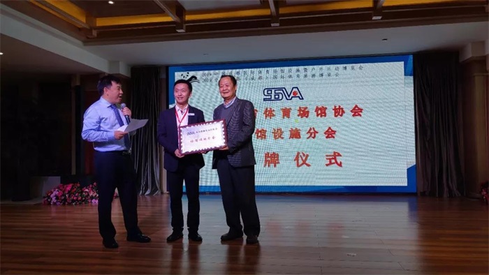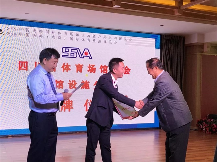 ▼四川省體育場館協(xié)會理事長龐元寧授予銳豐科技四川營銷中心 四川省體育場館協(xié)會場館“設(shè)施分會”牌匾。
