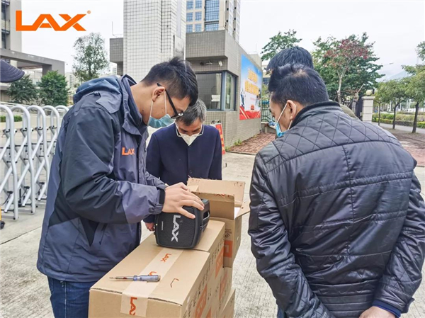 專車加急送達(dá)的方式向當(dāng)?shù)鼐栀?zèng)LAX便攜式音響,用實(shí)際行動(dòng)支援防疫阻擊戰(zhàn)。