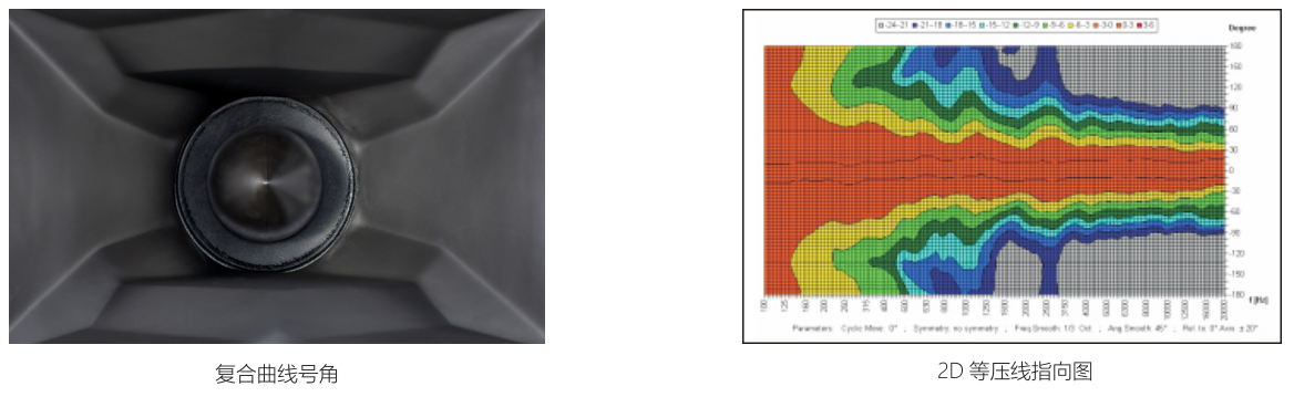 - 統(tǒng)計(jì)了大量實(shí)地圖紙而得出的覆蓋角度。通過(guò) CAD 輔助設(shè)計(jì)的復(fù)合號(hào)角曲線,確保在整個(gè)工作頻段內(nèi)的恒定的指向。