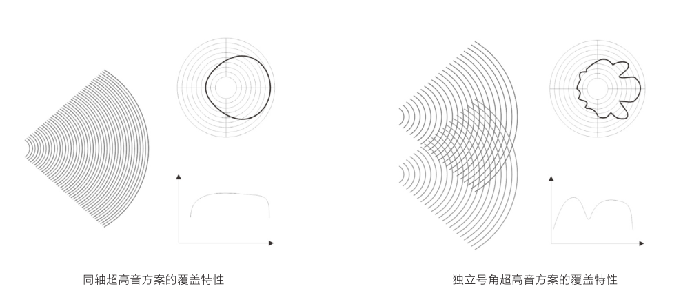 - 隨著聲壓要求的提高,加大中高音單元震動(dòng)系統(tǒng)的直徑成為務(wù)實(shí)的一種方法。但不斷地加大中高音元震動(dòng)系統(tǒng)直徑也會(huì)導(dǎo)致超高頻段的頻響及瞬態(tài)出現(xiàn)缺陷。為彌補(bǔ)這種缺陷,4 分頻方案提上日程。但 4 分頻方案超高音分頻點(diǎn)較高,獨(dú)立超高音號(hào)角方案對(duì)單元、號(hào)角的物理位置要求極高,還同時(shí)帶來(lái)超高音分頻點(diǎn)附近的覆蓋角度變窄等問(wèn)題。為此 LAX 使用了同軸超高音技術(shù)一并解決這些問(wèn)題。