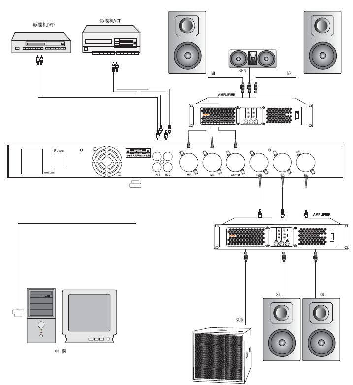 音頻輸出接口:主輸出左右、超低、中置、左右補(bǔ)聲