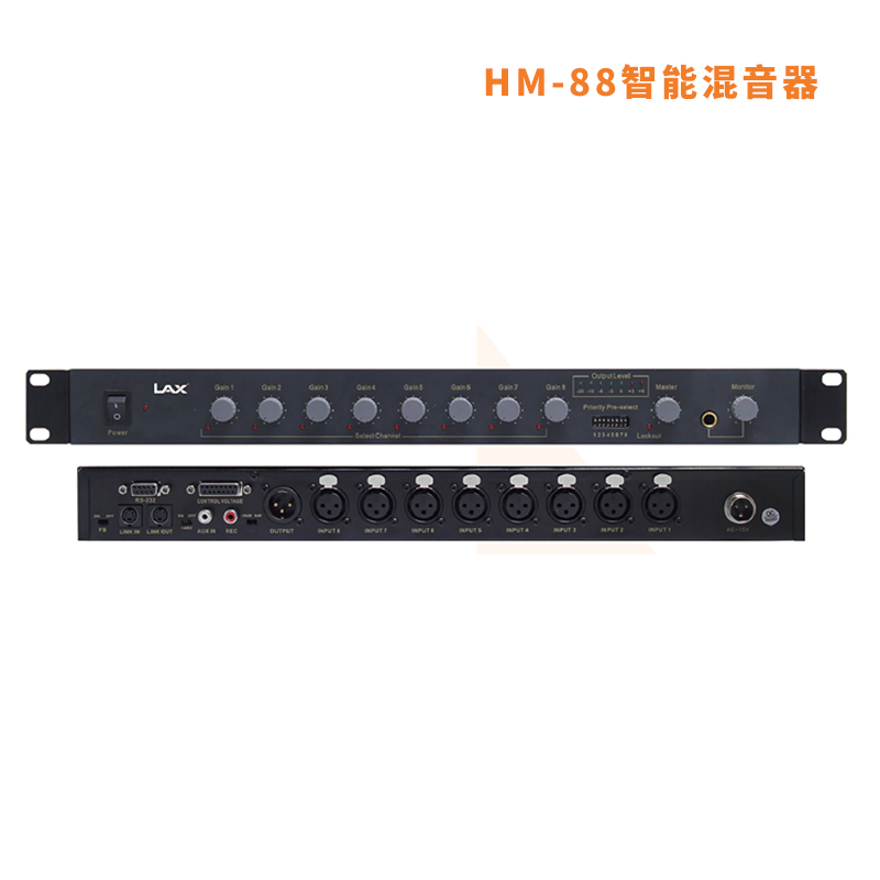 2.具有8路話筒或LINE輸入,另設(shè)一組輔助附耳機(jī)監(jiān)聽輸出插座;