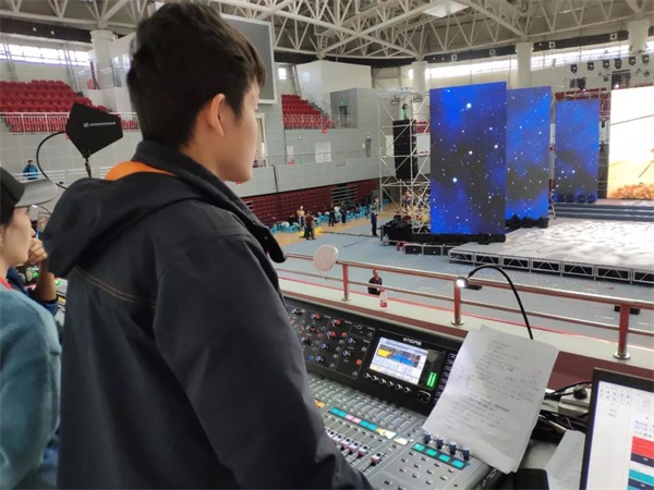 克拉瑪依當?shù)販囟纫呀?jīng)低至-11度,對于我們設(shè)備的搬運,消耗品的補充都是一個挑戰(zhàn),同時因為活動演出隊伍人數(shù)眾多,彩排時間也會占據(jù)許多,每天從早上九點到晚上一點都是演員彩排時間,所以對于我們擴聲系統(tǒng)來說,只能在彩排結(jié)束后才能開始調(diào)試,為了保證整體的聲音效果,每天晚上都是反復(fù)調(diào)試系統(tǒng),考量怎么使觀眾席得到更好的聲場效果,如果更好的保證演出的每一個環(huán)節(jié)都緊密連接,做好備份系統(tǒng),克服一切困難,只為了打造出一個細致的演出。