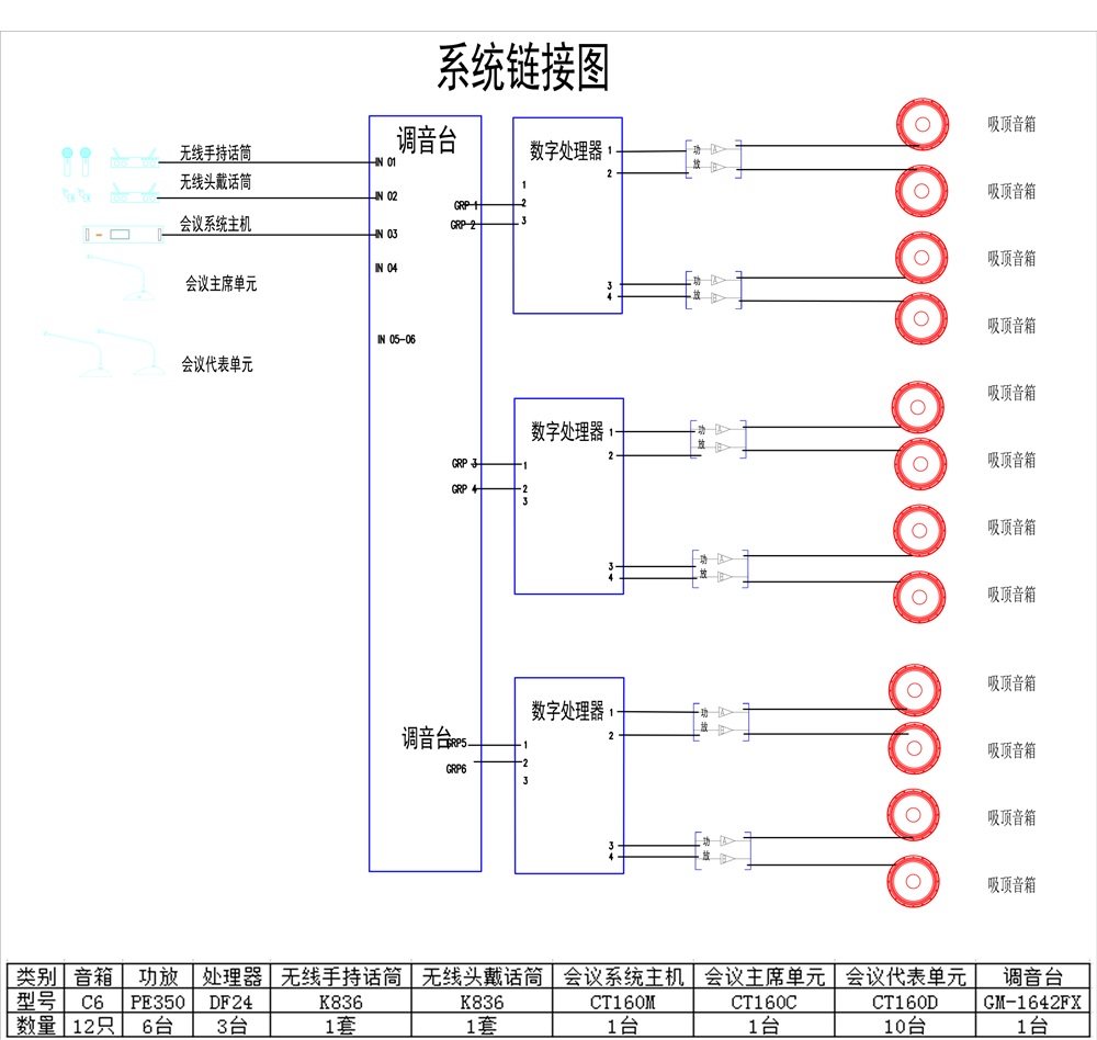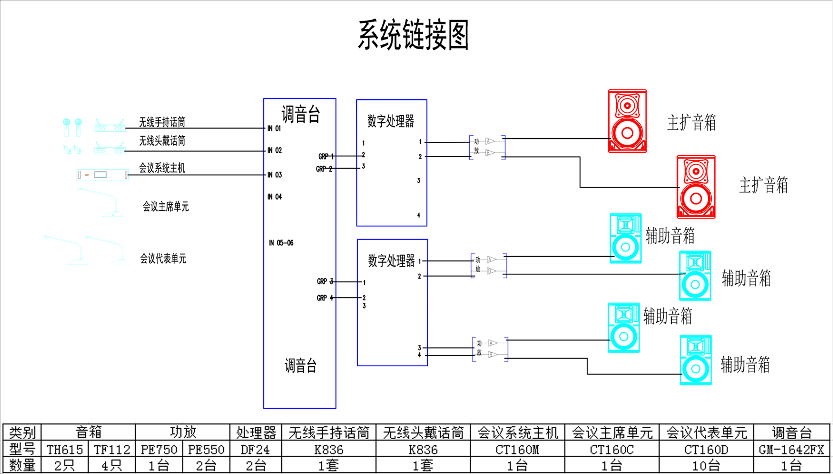 三、會(huì)議系統(tǒng)主要產(chǎn)品及設(shè)備連接圖