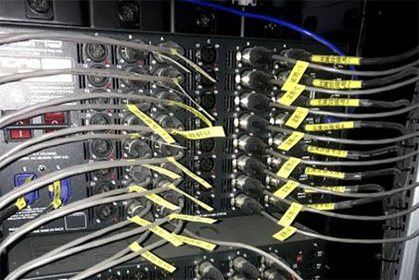 系統(tǒng)配電設(shè)計(jì)。功放使用的是LAX PD15004系列,通過設(shè)置Dante網(wǎng)絡(luò)信號和模擬信號的優(yōu)先級,