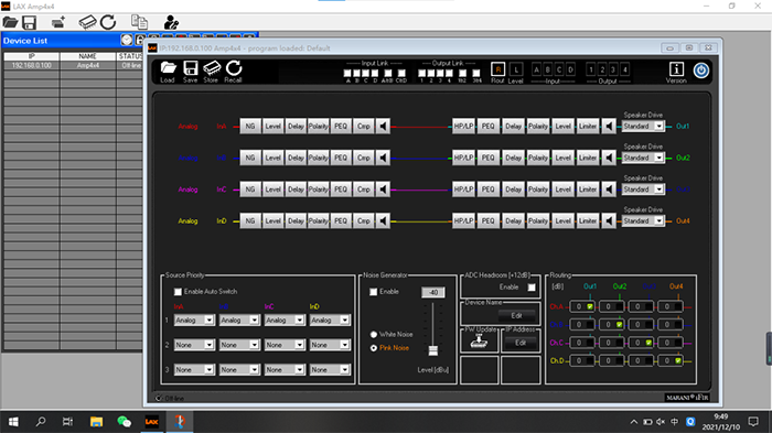 · LAXDSP功放模塊控制軟件,局域網(wǎng)網(wǎng)絡(luò)接口同時連接到同一臺PC機,且可自定義編組,
